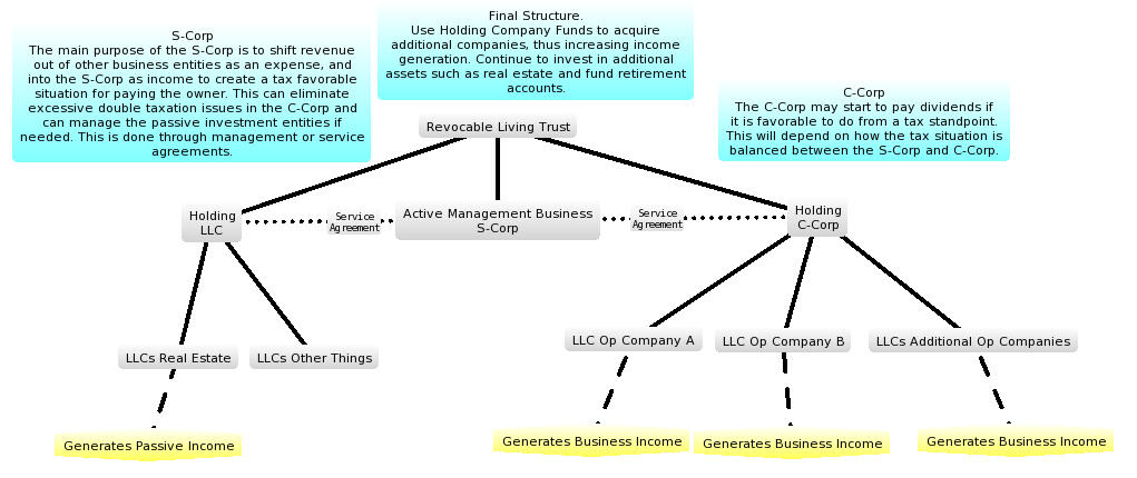 So far this has been a pretty standard outline. There is a financial planner, an accountant, an estate attorney, and potentially other professionals involved, even a bookkeeper. There could even be some succession planning done for the active business.The combination of these financial planning services has created an entity structure, or model, that looks fairly standard. However, what does this model resemble? It looks EXACTLY like the model used for starting a Small Business Holding Company for M&A Expansion.But, we've arrived at two major hurdles that so many businesses owners never get past, and this prevents the standard model from being used for M&A expansion.1. They are stuck working in the business, generally as part of the day-to-day operations, and therefore don't have the available time or capacity to do more.2. There's an unrecognized "something" that is wrong with their business that limits it's selling value and the owners ability to exit. In other words, something about the business prevents a buyer from wanting to buy it, or being able to buy it. This is why so few businesses are ever able to sell, and understanding how to solve this problem is what opens the door to M&A activities and allows the owner to properly exit the business from an operational perspective.The next phase is about solving these two problems.